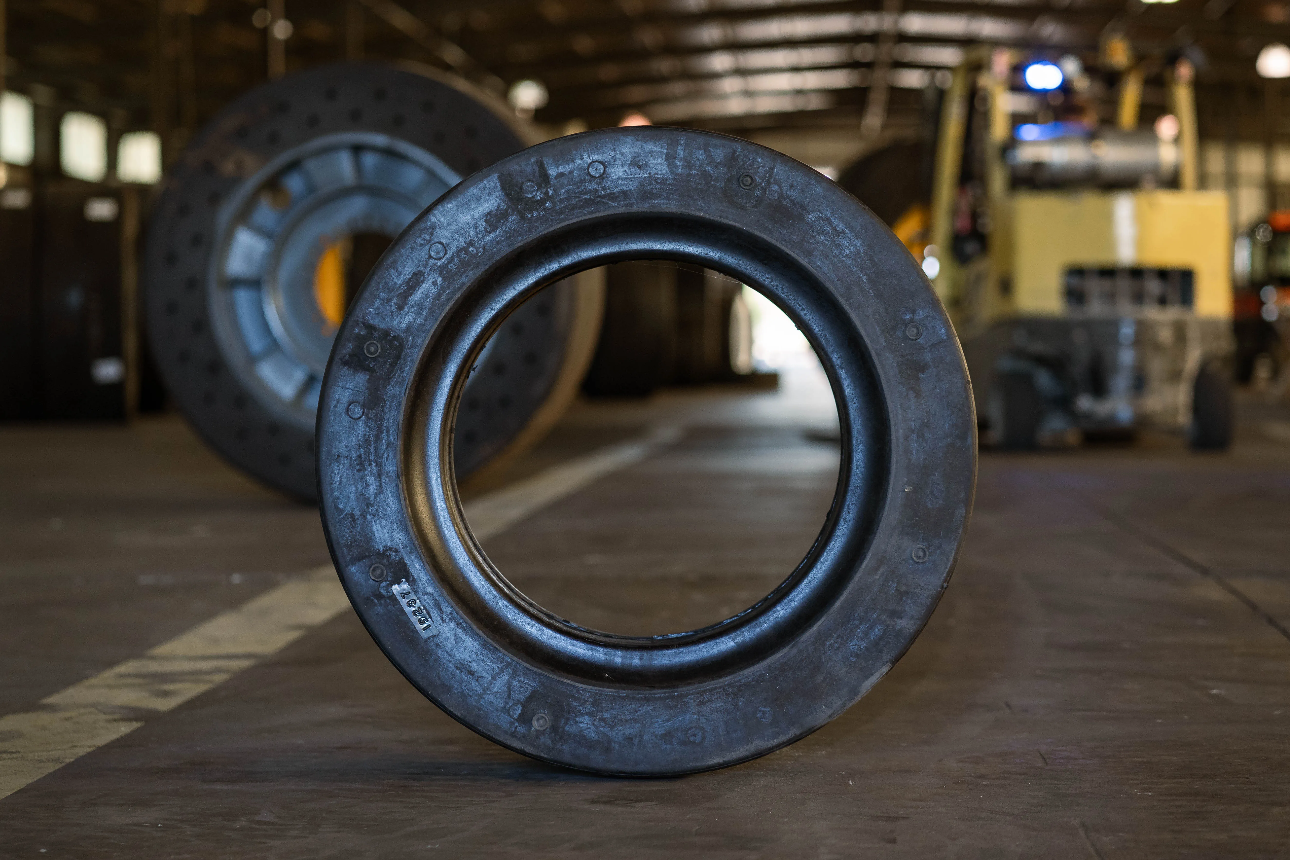 We use 100% natural rubber for its outstanding cut resistance and longevity qualities that are such an important part of the life cycle of a solid rubber tire. Our exclusive rubber compounds allow us to produce the greatest cut resistant solid tire while maintaining maximum flexibility of the rubber.