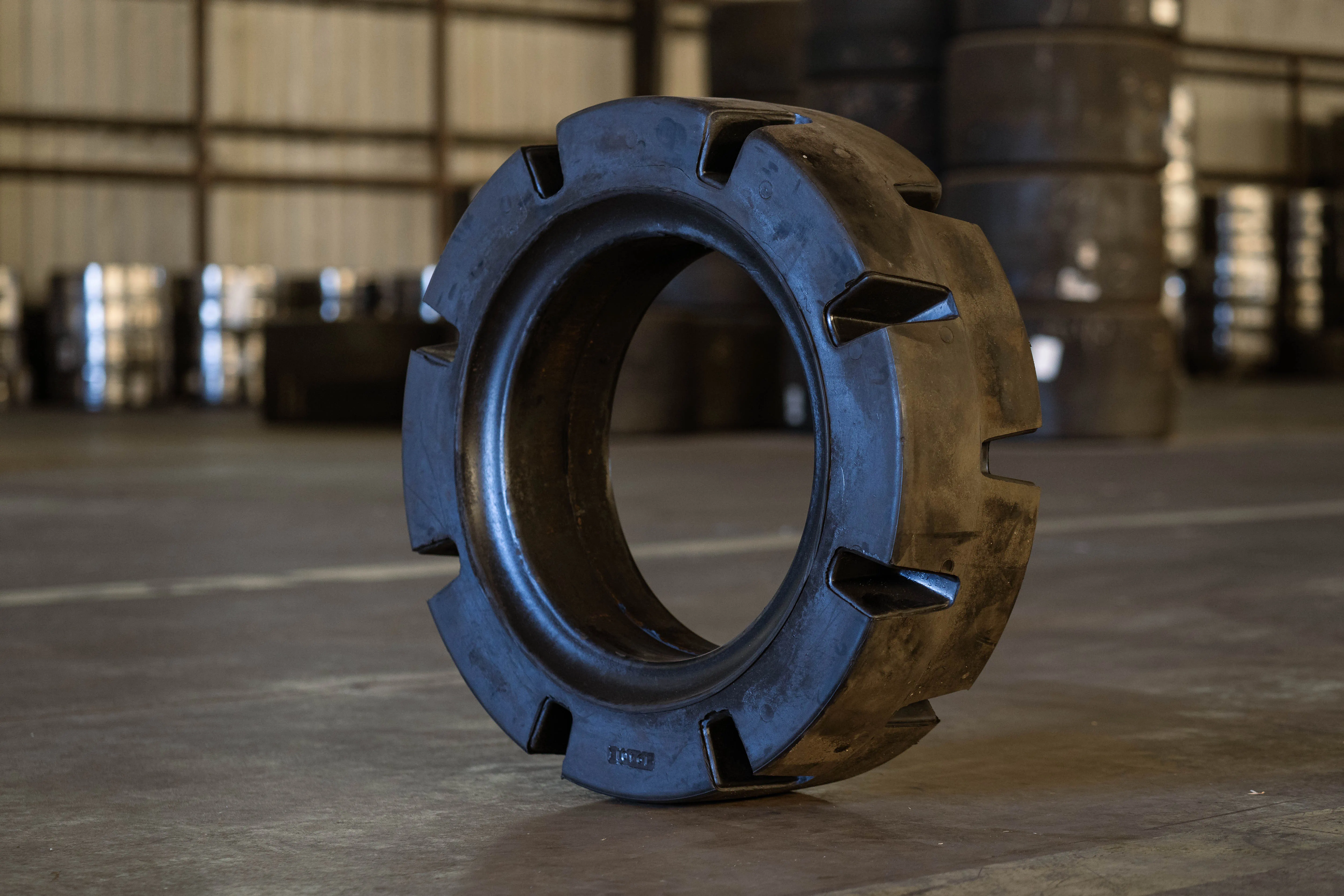 We use 100% natural rubber for its outstanding cut resistance and longevity qualities that are such an important part of the life cycle of a solid rubber tire. Our exclusive rubber compounds allow us to produce the greatest cut resistant solid tire while maintaining maximum flexibility of the rubber.